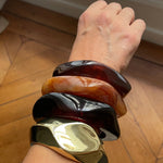 With our Caramel Asymmetric Bangle and our Cream Asymmetric Bangle
